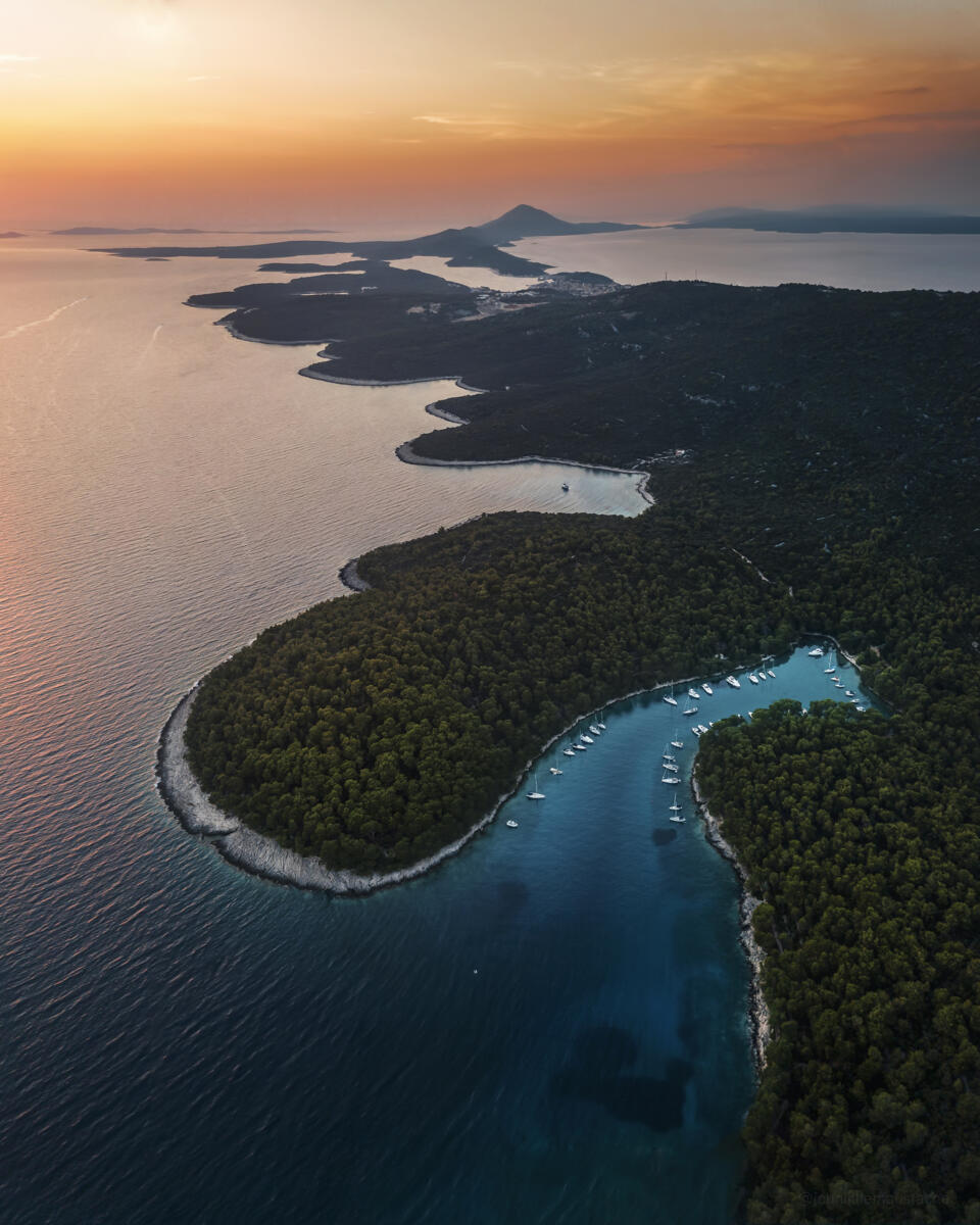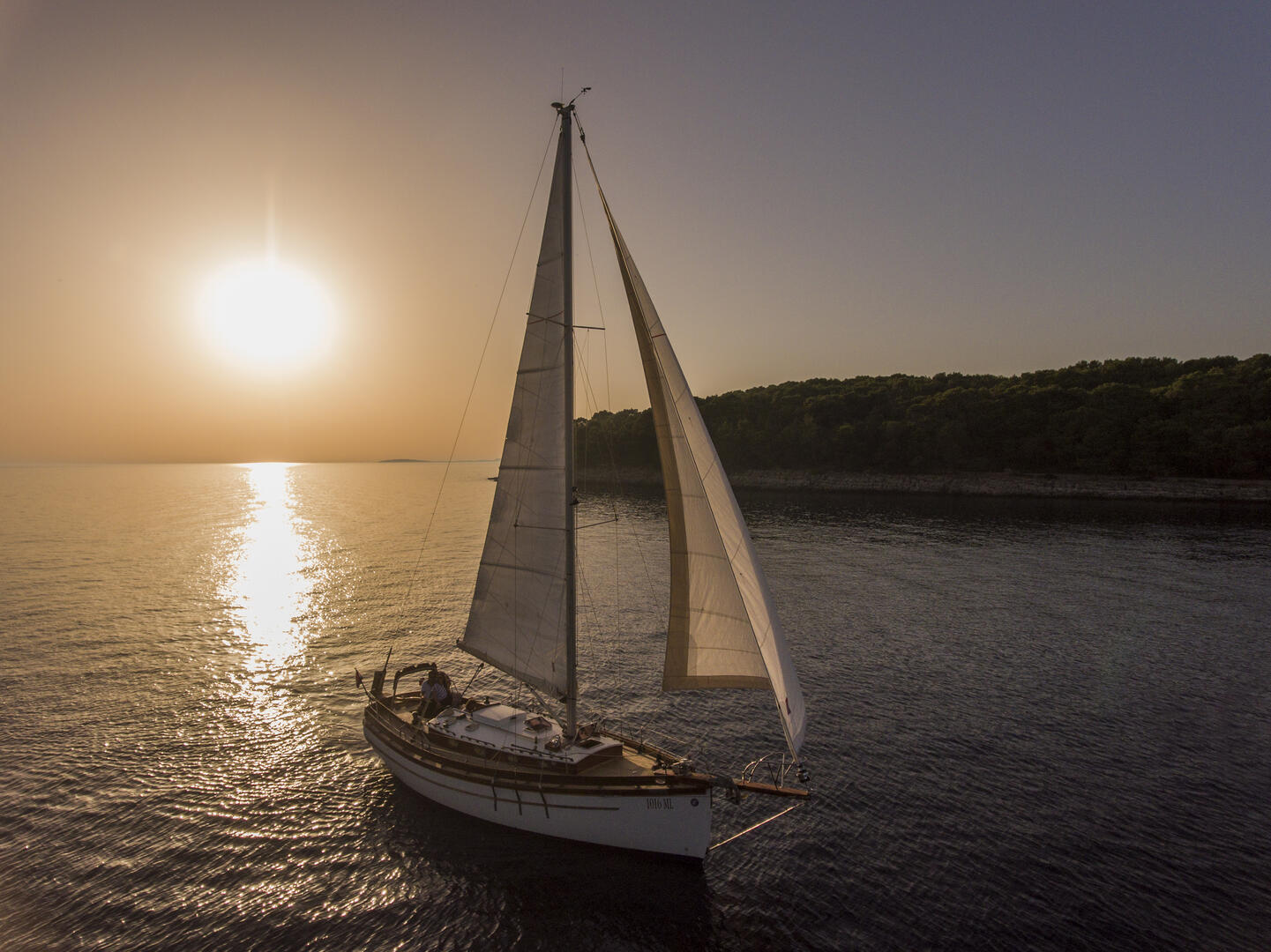 The southernmost inhabited island of the Lošinj archipelago is Ilovik, located in a small bay, which is protected on the north side by the uninhabited island of Sv. Petar. The coast is easily accessible from all sides, with many gentle bays. The largest bay with a sandy beach is Paržine on the southeast side of the island. Between the two islands, a well-protected, 300 m wide canal stretches for 2.5 km and serves as a port for local fishermen as well as many visiting boaters. On all islands there are shops, post office, bakeries, cafes and several restaurants offering local delicacies.