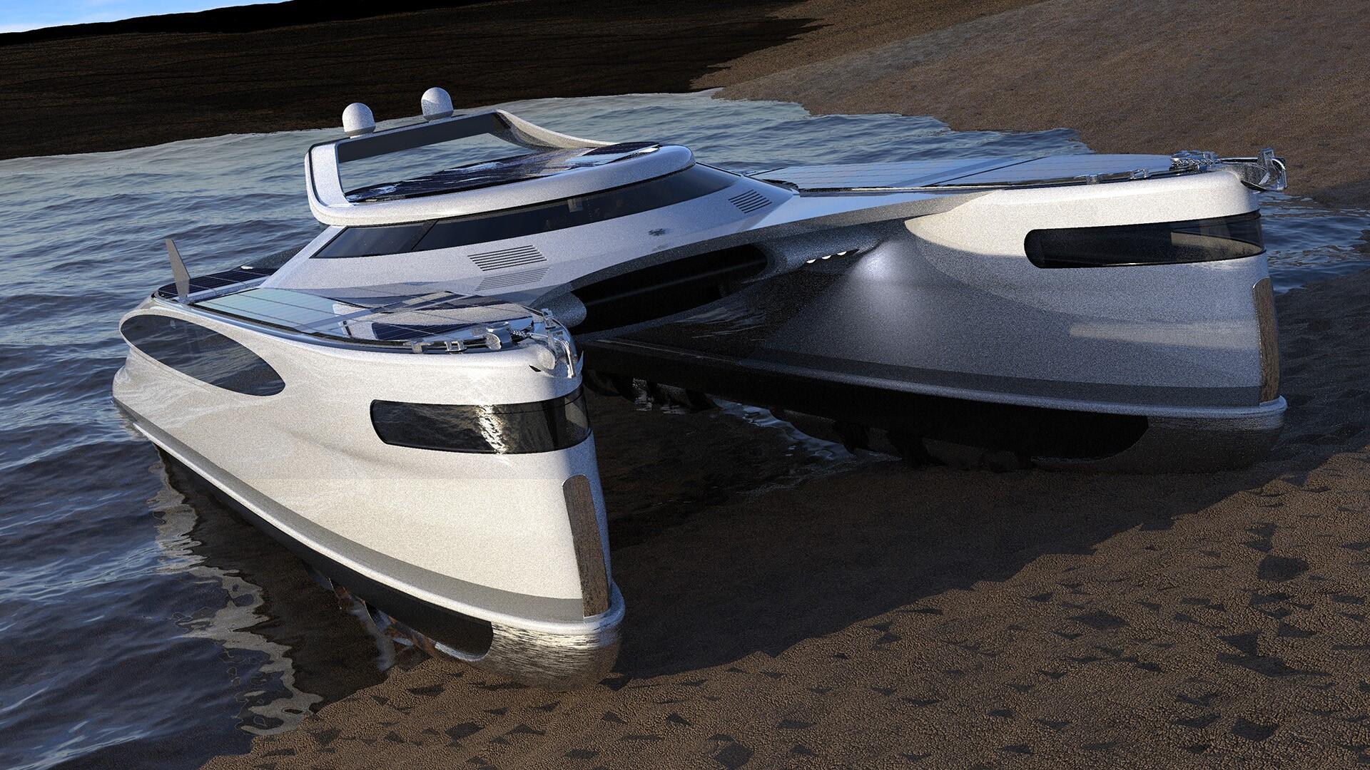 Pagurus, dužine 82 stope, talijanskog dizajnera Pierpaola Lazzarinija je amfibijski katamaran na solarni pogon koji također radi na dizel. Pagurus "crabmaran" može napustiti vodu i prelaziti plaže, preko pijeska i blata brzinom do 22 milje na sat. Najnoviji koncept dizajna Pierpaola Lazzarinija, osnivača studija za dizajn Lazzarini sa sjedištem u Rimu, mogao bi se nazvati "hibridno-hibridnim" vrstama, jer koristi i dizel i solarnu energiju i na vodi i na zemlji.