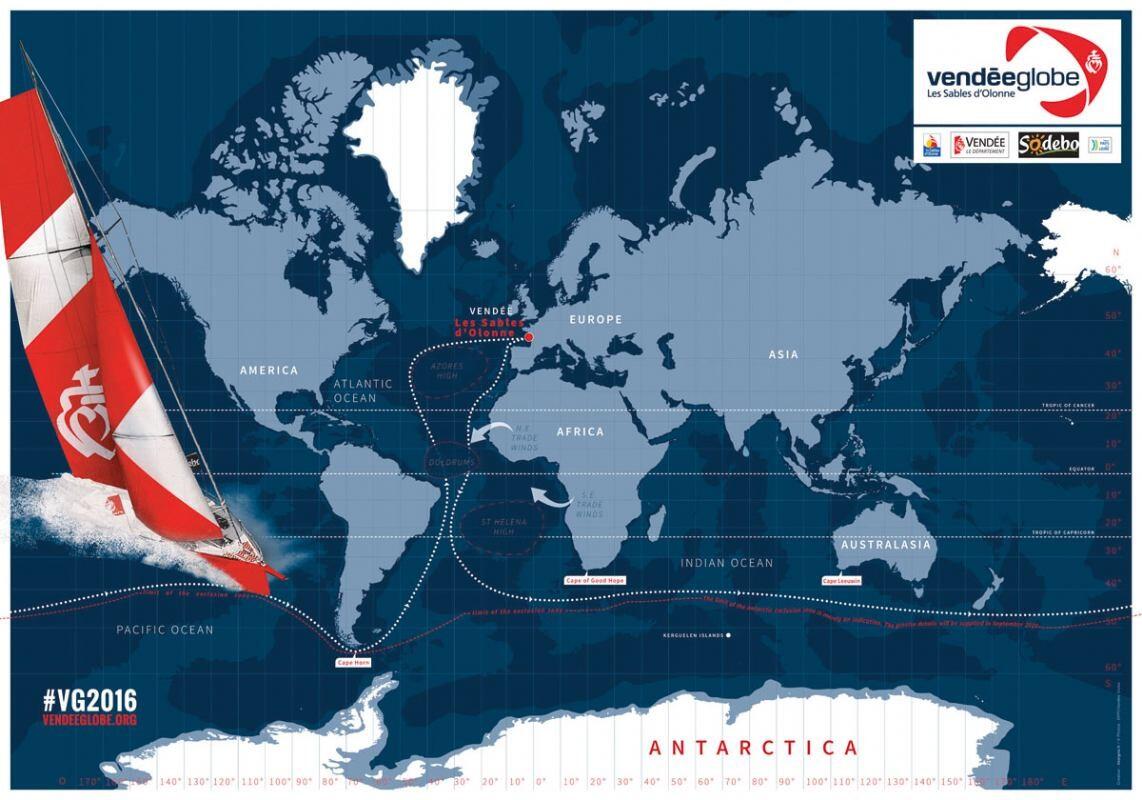 Start utrke je tradicionalno bio u Les Sables d’Olonne, a onda se krenulo niz Atlantski ocean do Rta dobre nade; odakle se u smjeru kazaljke na satu nastavlja oko Antarktika, prateći rt Leeuwin u zapadnoj Australiji i rt Horn, a cijela ruta se zaokružuje s povratkom u Les Sables d’Olonne. Utrka obično pokriva približno 24 tisuće nautičkih milja (44.000 km) i traje od studenog do veljače, tempirano za smještanje natjecatelja u Južni ocean tijekom australskog ljeta, a trenutačno stanje u poretku govori da se vodi mrtva trka između čak 10 jedrilica kojima je ostalo tek cca 4 do 5 tisuća nautičkih milja do ulaska u cilj. Tu dugu kolonu po posljednjim rezultatima predvodi Charlie Dalin na Apiviji dok su mu praktički „za petama“ Thomas Ruyant (LinkedOut) i Yannick Bestaven (Maitre Coq IV).