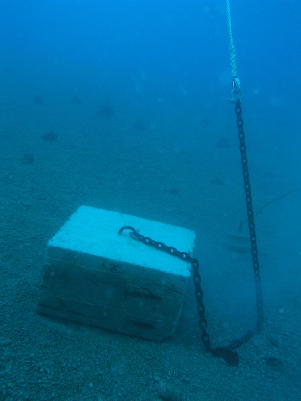 Installation takes approximately 20 minutes. The machine operator on land or on board follows the instructions of a pair of divers who center and correct the position of the anchor. This is followed by the connection of the bottom and mooring lines and the buoy. Upon completion, the system is immediately ready for use.